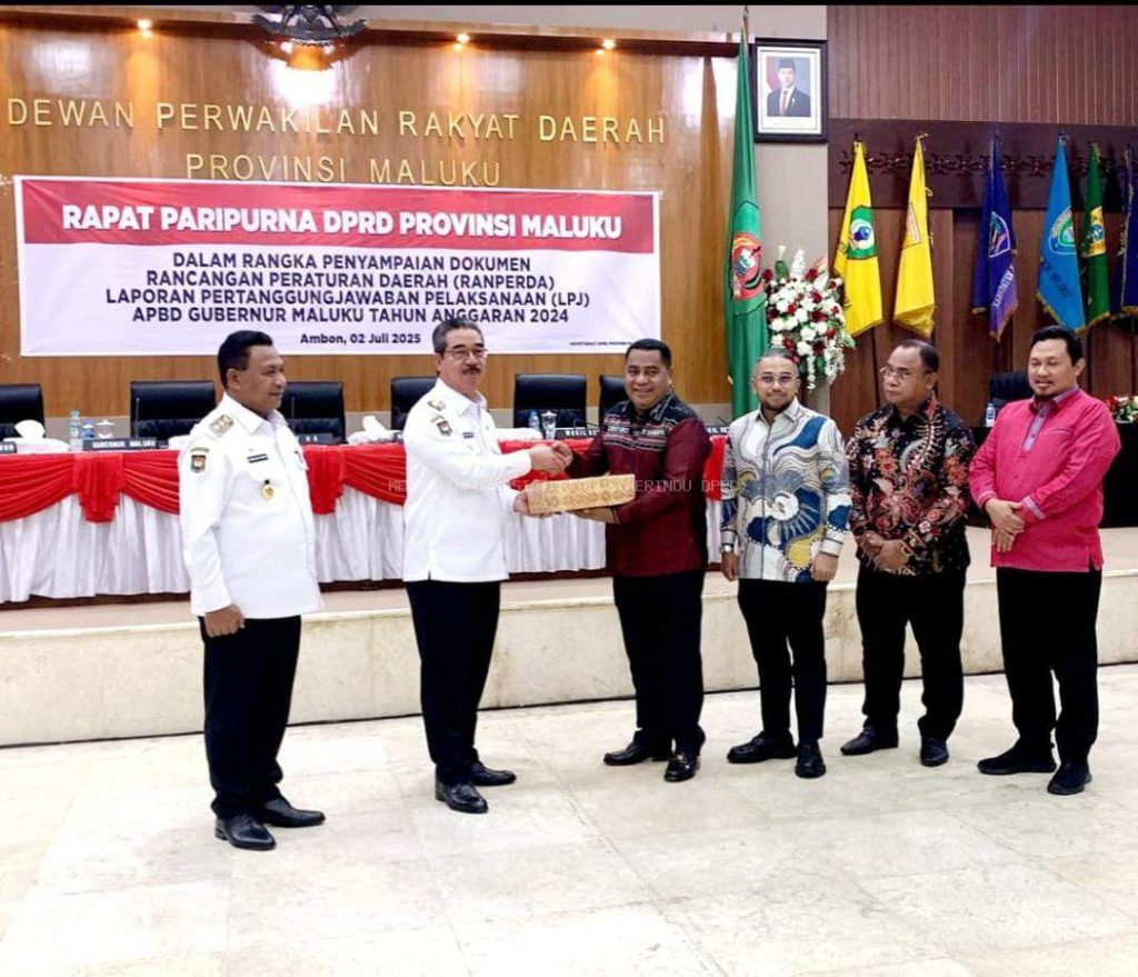 Dokumen tersebut diserahkan langsung oleh Gubernur Maluku, Hendrik Lewerissa, saat rapat paripurna DPRD Provinsi Maluku, dalam rangka penyampaian dokumen Ranperda LPJ Pelaksanaan APBD Gubernur Maluku tahun anggaran 2024, yang berlangsung di ruang rapat paripurna, Rabu (2/7/2025).