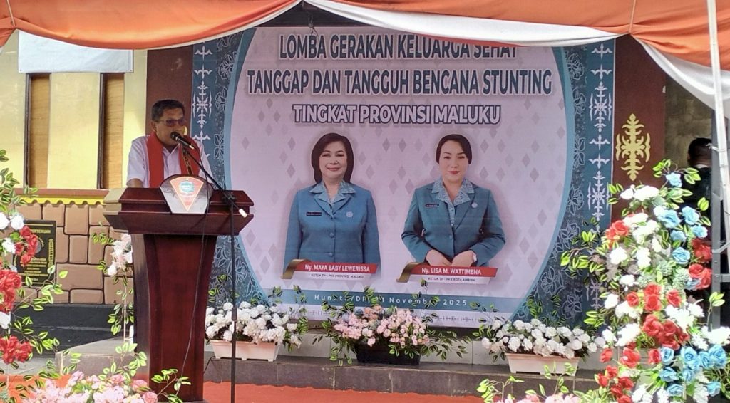 Ambon, BM.com-Ketua TP-PKK Provinsi Maluku, Bebby Maya Lewerissa, menghadiri Lomba Gerakan Keluarga Sehat Tanggap dan Tangguh Bencana Stunting Tingkat Provinsi Maluku yang dipusatkan di Desa Hunuth, Kecamatan Teluk Ambon, Jumat (21/11/2025).